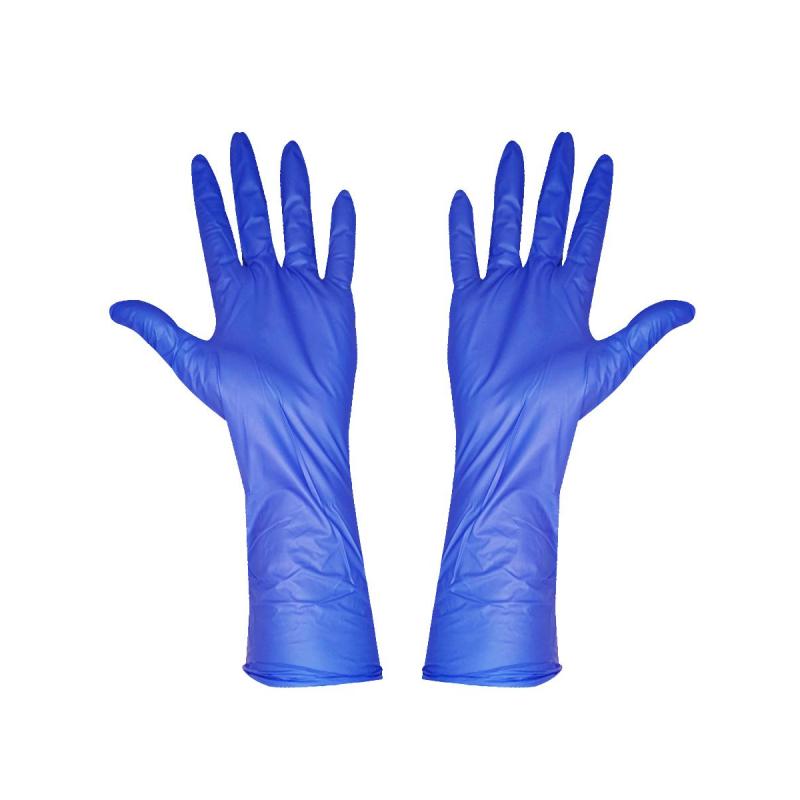 Перчатки нитриловые одноразовые защитные, неопудренные, нестерильные. Удлиненные, длина перчатки 30 см. Размер: 9, L. Для контакта с пищевой продукцией и предотвращения контакта с пищевой продукцией кожного покрова рук. Количество в упаковке: 100 штук/50 пар Имеется регистрационное удостоверение на медицинское изделие.