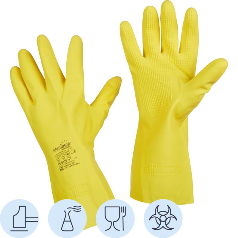 Перчатки Manipula Форсаж (L-F-14) - герметичные латексные перчатки, стойкие к кислотам и щелочам высоких концентраций, органическим растворителям (этанол, ацетон) и растительным жирам. Текстурированная рабочая поверхность обеспечивает отличный захват в жирных средах, а также при работе с замороженными продуктами. Хлорирование поверхности способствует увеличению механической прочности и снижению аллергических реакций на латексные протеины. Плотное хлопковое покрытие внутри перчаток служит для удобства надевания и использования, снижения аллергических реакций на латексные протеины, а также комфортной термоизоляции. Перчатки Manipula Форсаж (L-F-14) одобрены для контакта с пищевыми продуктами. Модель толщиной 0,55 мм имеет запатентованную рабочую поверхность, предназначенную специально для работы в жирных средах. Длина перчаток - 32 см. Соответствуют стандартам: ЕС 1935/2004, ТР ТС 019/2011, ГОСТ 12.4.252-2013, ГОСТ EN 388-2016, ГОСТ EN ISO 374-1-2016/Type A, ГОСТ ISO 374-5-2016. Защитные свойства ТР ТС: Ми Вн Бм К80 Щ50 Он Нж. Срок хранения: 5 лет. Соответствует регламенту ЕС 1935/2004. Разрешен контакт с пищевыми продуктами. Перчатки являются большемерными, размер перчаток - XL (10-10.5). Цвет на изображении товара в интернет-магазине или в печатном каталоге может отличаться от оригинала из-за особенностей цветопередачи монитора.