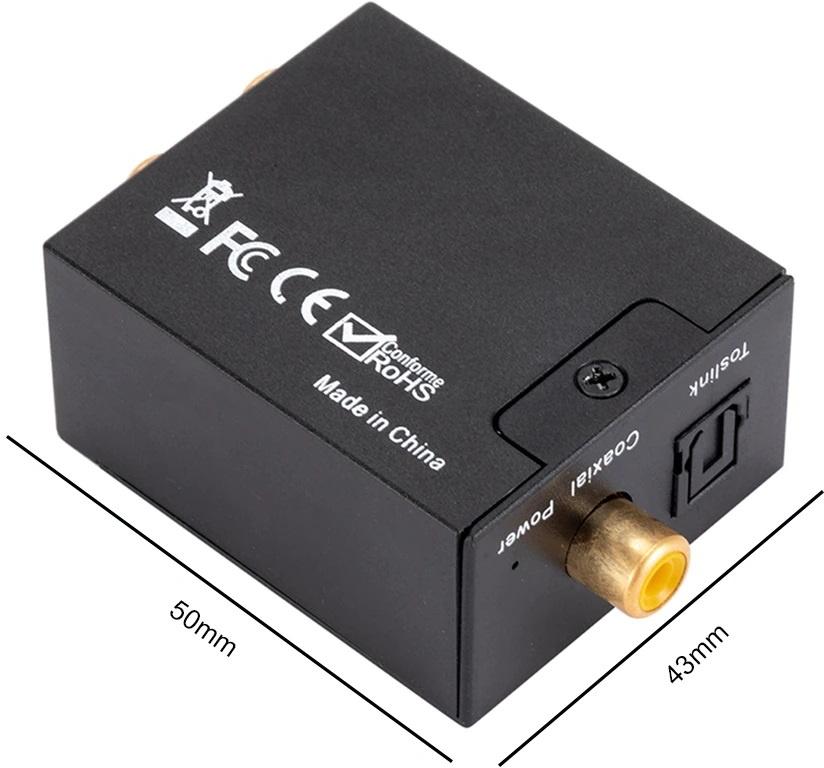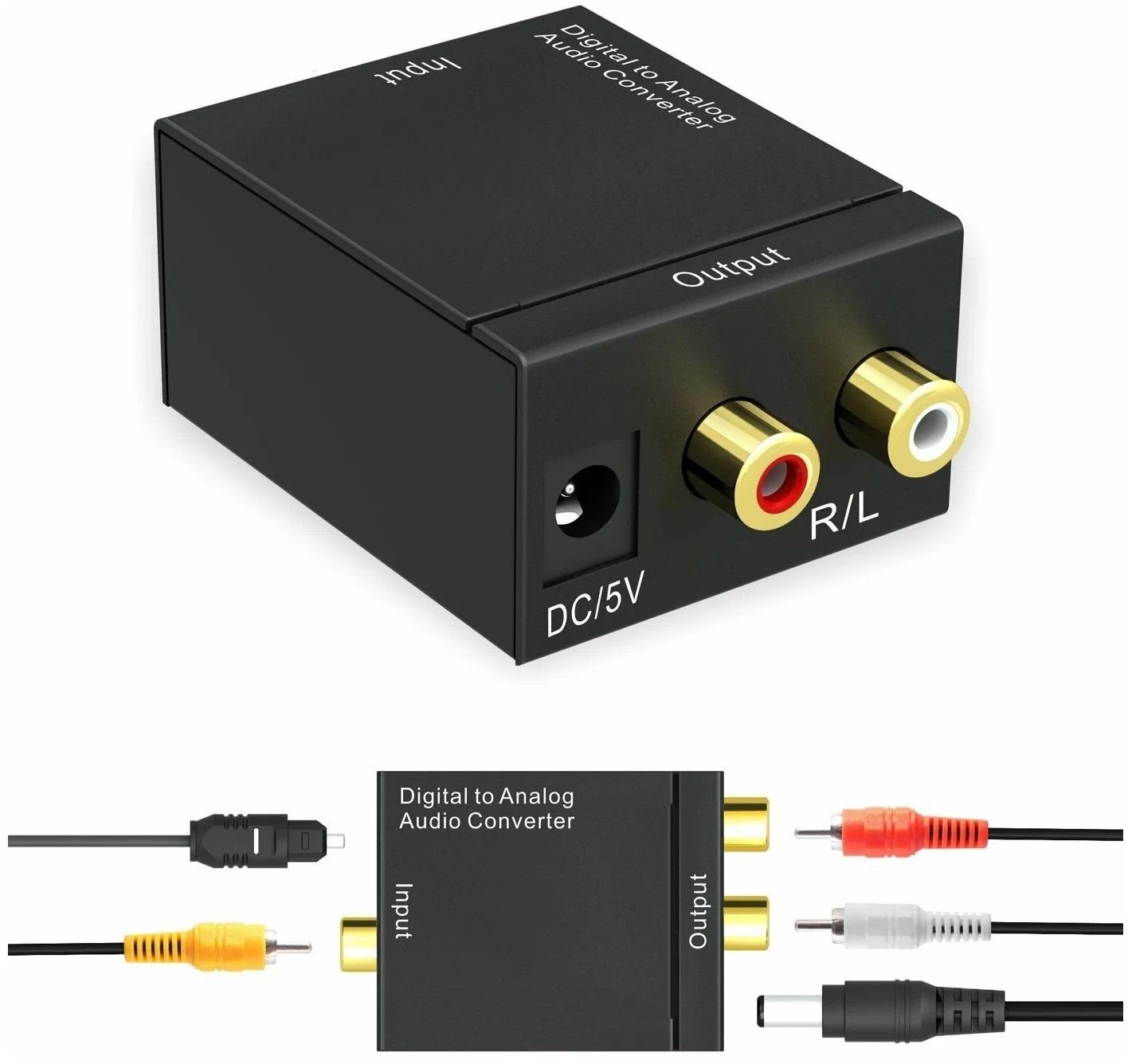 Описание Аудиоконвертер ЦАП (Цифро-аналоговый преобразователь) вход Коаксиальный (RCA) + Оптический (Toslink) - выход Аудио (RCA R + L)