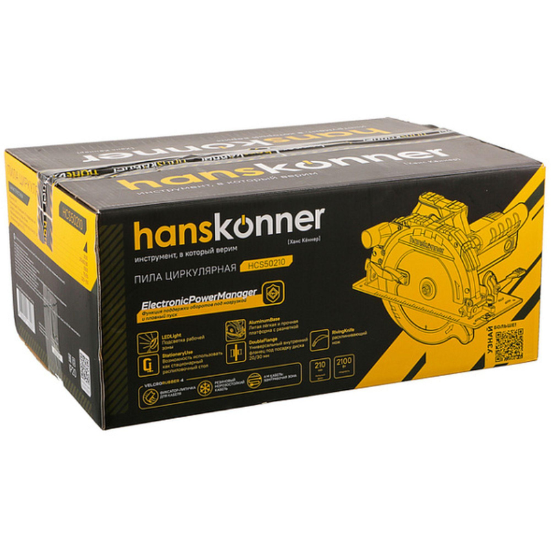 Пила циркулярная Hanskonner HCS50210 - надежная и производительная циркулярная пила под рабочий диаметр пильного диска 210 мм с возможностью стационарного крепления. Пила оснащена 2100 Вт электродвигателем MaxPower, высокопрочным редуктором и фирменными пылезащищенными подшипниками, благодаря чему способна выполнять больший объем работ в сравнении с бытовыми аналогами, и демонстрирует высокую эффективность не только с мягкими, но и твердыми породами древесины. Максимальная глубина пропила - 75 мм. Важная особенность модели Hanskonner HCS50210 - наличие блока константной электроники EPM (Electronic Power Manager), предотвращающего снижение рабочих оборотов под нагрузкой и обеспечивающего плавный запуск. Инструмент получил не склонную к деформации литую алюминиевую платформу, гарантирующую высокое качество производимого реза. Предусмотрена возможность точной настройки пилы на необходимую глубину пропила, а также возможность выполнения резов на угол от 0 до 45 градусов. Фиксация опорной платформы в требуемом наклонном положении осуществляется безыинструментальным способом - с помощью специального зажимного рычага, что значительно ускоряет и облегчает настройку перед работой. Заклинивание диска при распиловке предотвращает специальный расклинивающий нож. Для большего удобства пользователя модель имеет LED подсветку рабочей зоны, обеспечивающую отличную видимость линии реза даже при недостаточном освещении, а также функцию блокировки вала шпинделя, гарантирующую максимально быструю замену оснастки. Предусмотрена функция быстрого доступа к щеткам QuickChange, дающая возможность их быстрой замены, без демонтажа элементов корпуса. Благодаря применению сетевого кабеля 4VelcroRubber с резиновой изоляцией, в полной мере сохраняется его гибкость и эластичность в условиях низких температур. Четырехметровая длина кабеля обеспечивает рабочую зону площадью до 50 м², а фиксатор-липучка способствует удобству хранения. В комплектацию к инструменту включены прижимные струбцины и патрубок для подключения пылесоса.Назначение: для продольной и поперечной распиловки древесины различной твердости, а также различных листовых пиломатериалов: фанеры, ламината, ДВП, ДСП и т д.Комплектация:- Пила циркулярная- Инструкция- УпаковкаВнешний вид и/или характеристики товара могут быть изменены производителем в соответствии с производственным процессом.
