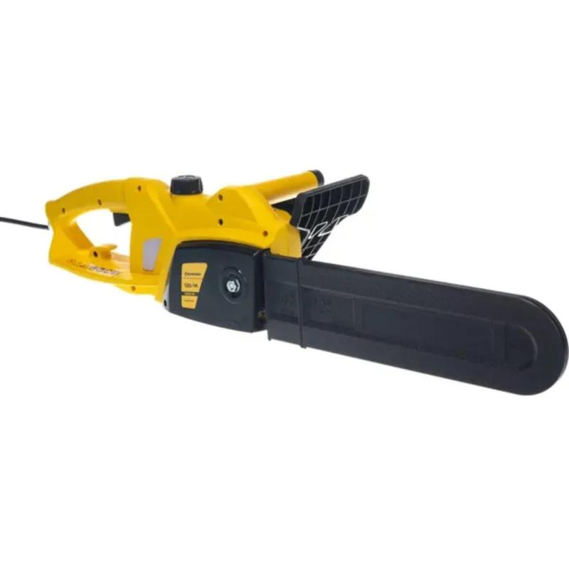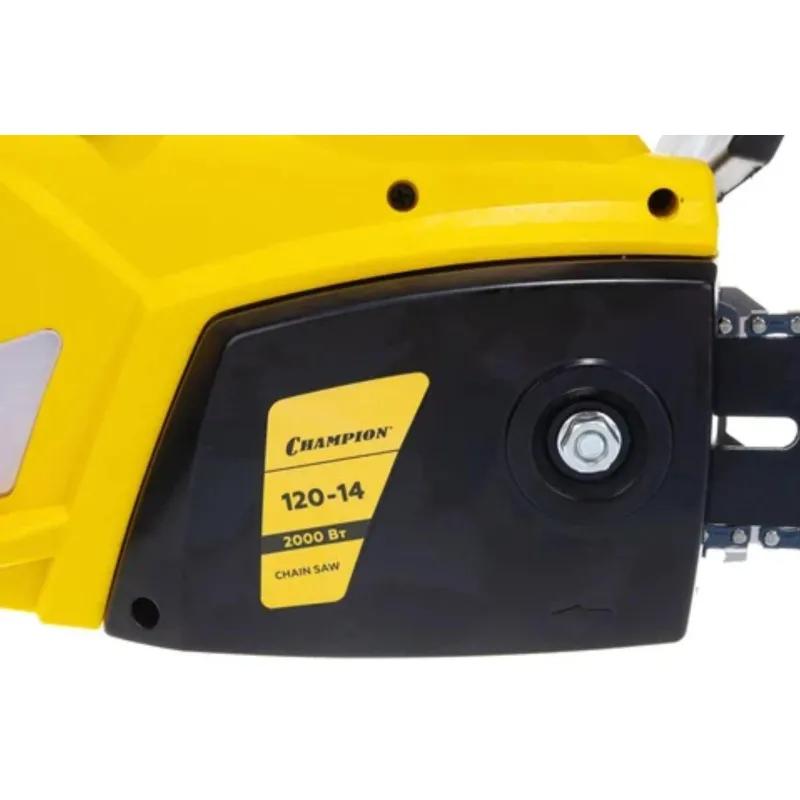 Пила цепная электрическая Champion 120–14 — это недорогая и легкая электрическая пила для сада и дачи. Производитель уделил особое внимание облегчению веса в данном изделии без ущерба в качестве и надежности. Не стоит забывать, что данная модель относится к бытовому классу и ей не следует работать на крупных строительных объектах, где пилить бревна и доски приходится с утра до вечера. Эффективный выброс рабочей части пильной шины составляет 35 см, а мощность электродвигателя имеет значение в 2000 Вт. Таких показателей с запасом хватит на выполнение всевозможных работ на дачном участке, в саду, на заготовку небольшого количество дров и на строительство собственного загородного дома. Скорость режущий цепи практически не отличается от электропил профессионального уровня, но помните, что оптимальные режущие характеристики цепная электрическая пила Champion 120–14 будет показывать при хорошо заточенной цепи. Тупая цепь значительно повышает нагрузку на двигатель, что может негативно сказаться на общем ресурсе устройства в целом.<br><br>Комплектация:<br>• Пила цепная электрическая;<br>• Шина Champion 14"-3/8—1.3—52;<br>• Цепь Champion 3/8—1.3 мм-52;<br>• Чехол для шины Champion 14″;<br>• Ключ-отвертка для установки шины и цепи;<br>• Руководство по эксплуатации;<br>• Упаковка.<br><br>Внешний вид и/или характеристики товара могут быть изменены производителем в соответствии с производственным процессом.