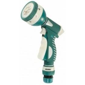 | Описание | Пистолет-распылитель для полива и орошения садовых цветов, кустов и деревьев. Данная модель имеет восемь режимов распыления, менять которые легко и просто благодаря регулировочному кольцу на головке распылителя. Удобная широкая клавиша "Пуск" с фиксатором - для непрерывного полива. |