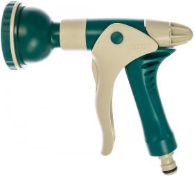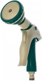 | Описание | Пистолет-распылитель предназначен для полива и орошения садовых растений, кустов и деревьев. Данная модель имеет 4 режима распыления (от жесткой струи до мелких брызг), менять которые легко и просто благодаря регулировочному кольцу, расположенному над курком. Удобный курок находится спереди. |