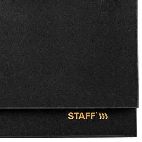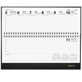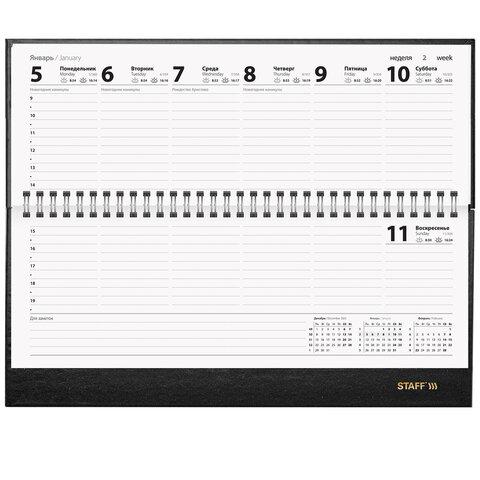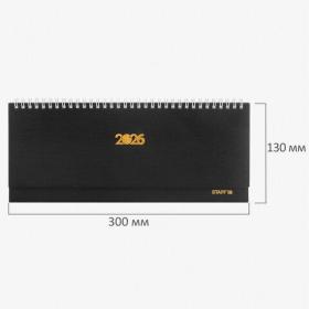 В датированном планинге STAFF все дни недели расположены на одном развороте, благодаря чему очень удобно планировать важные дела на неделю вперед.Внутренний блок содержит 64 листа офсетной бумаги белого цвета плотностью 65 г/м2. Обложка из бумвинила и твердый переплет обеспечивают долгий срок службы. Подходит для тиснения только фольгой. Скрепление осуществляется с помощью евроспирали. Размер изделия - 300х130 мм.
