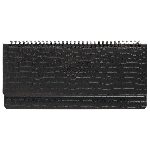 Датированный планинг BRAUBERG "Comodo" с обложкой, стилизованной под кожу крокодила, – великолепная возможность "прикоснуться" к легендарной рептилии. Строгий черный цвет делает этот деловой аксессуар изысканным.Внутренний блок содержит 60 листов офсетной бумаги кремового цвета плотностью 70 г/м2. Обложка из экокожи и твердый переплет обеспечивают долгий срок службы. Для заметок в планинге имеется 11 страниц в конце внутреннего блока. Подходит для горячего тиснения. Скрепление осуществляется с помощью евроспирали. Размер изделия – 305х140 мм.