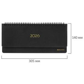 Планинг датированный 2026 305х140 мм BRAUBERG "Select", под кожу, черный, 117232