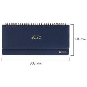 Планинг датированный 2026 305х140 мм BRAUBERG "Select", под кожу, темно-синий, 117231
