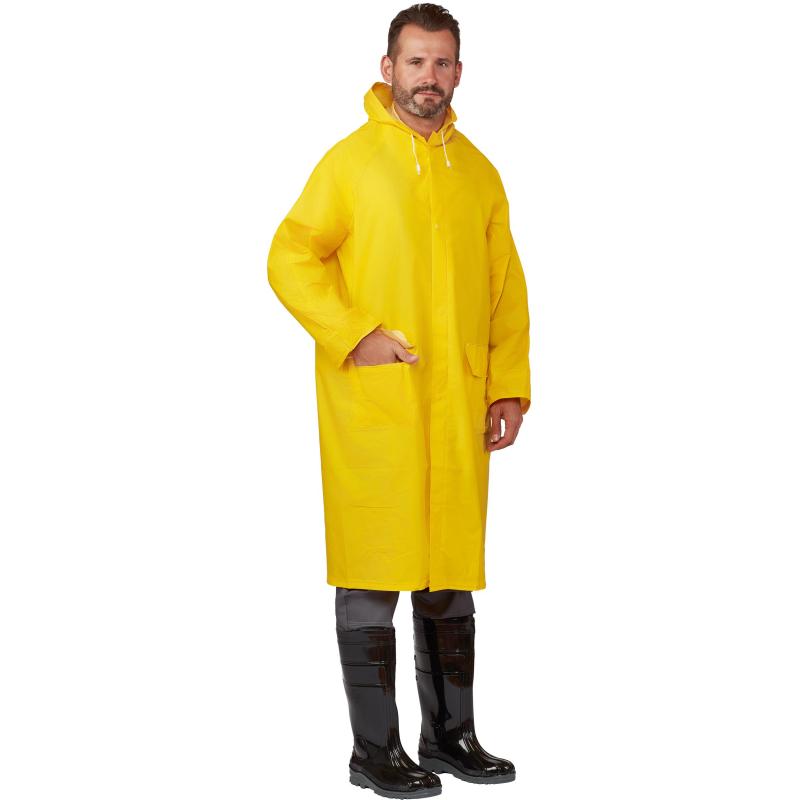Плащ влагозащитный Delta Plus МA305 полиэстеровый на кнопках жёлтый (размер 48-50, рост 164-172). <br><br>Плащ влагозащитный предназначен для защиты от дождя и ветра. Он идеально подходит для работы в условиях переменной погоды, обеспечивая комфорт и защиту. Это изделие оснащено всеми необходимыми функциональными элементами для удобства эксплуатации.<br><br>Материал плаща: 100% полиэстер с ПВХ-покрытием, что гарантирует высокую влагозащиту и долговечность. Пропаянные швы обеспечивают дополнительную защиту от воды. В комплект входит втачной капюшон, который можно регулировать по мере необходимости. Ветрозащитная планка на кнопках предотвращает попадание ветра внутрь, а рукава-реглан обеспечивают свободное движение.<br><br>Для удобства использования предусмотрены внутренние манжеты в рукавах, а также два накладных кармана с клапанами для хранения мелких предметов. На спине имеется клапан для воздухообмена.<br><br>Защитные свойства: <br>— Ми — защита от механических воздействий; <br>— З — защита от общих производственных загрязнений; <br>— Влагозащита.<br><br>Плащ выполнен в свободном силуэте, не стесняющем движений. Удобные карманы и регулировка капюшона обеспечивают комфорт и практичность.<br><br>Стандарты ГОСТ Р 12.4.288-2013, ТР ТС 019/2011. Рекомендации по уходу: стирать в холодной воде, не использовать хлорсодержащие вещества.<br><br>Подобрать размер.<br><br>Цвет на изображении товара в интернет-магазине или в печатном каталоге может отличаться от оригинала из-за особенностей цветопередачи монитора.
