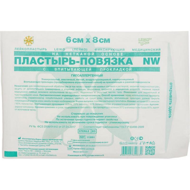 Стерильная пластырь-повязка на нетканой основе размером 6 на 8 см., со впитывающей прокладкой и атравматичной сеткой. Универсальная, эластичная, мягкая, воздухо- и паропроницаемая.Применяется при первичной, вторичной, послеоперационной обработке ран (в том числе с нанесением мазевых составов и растворов), защиты от дополнительного травмирования, оказания первой медицинской помощи при незначительных повреждениях; для безопасной фиксации медицинских устройств. Гипоаллергенный пластырь-повязка подходит для применения у пациентов как с нормальной, так и с чувствительной кожей.