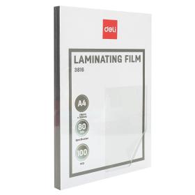 Пленка для ламинирования Deli E3816, 80мкм, 216х303 мм, 100шт., глянцевая, A4 Bad Pack