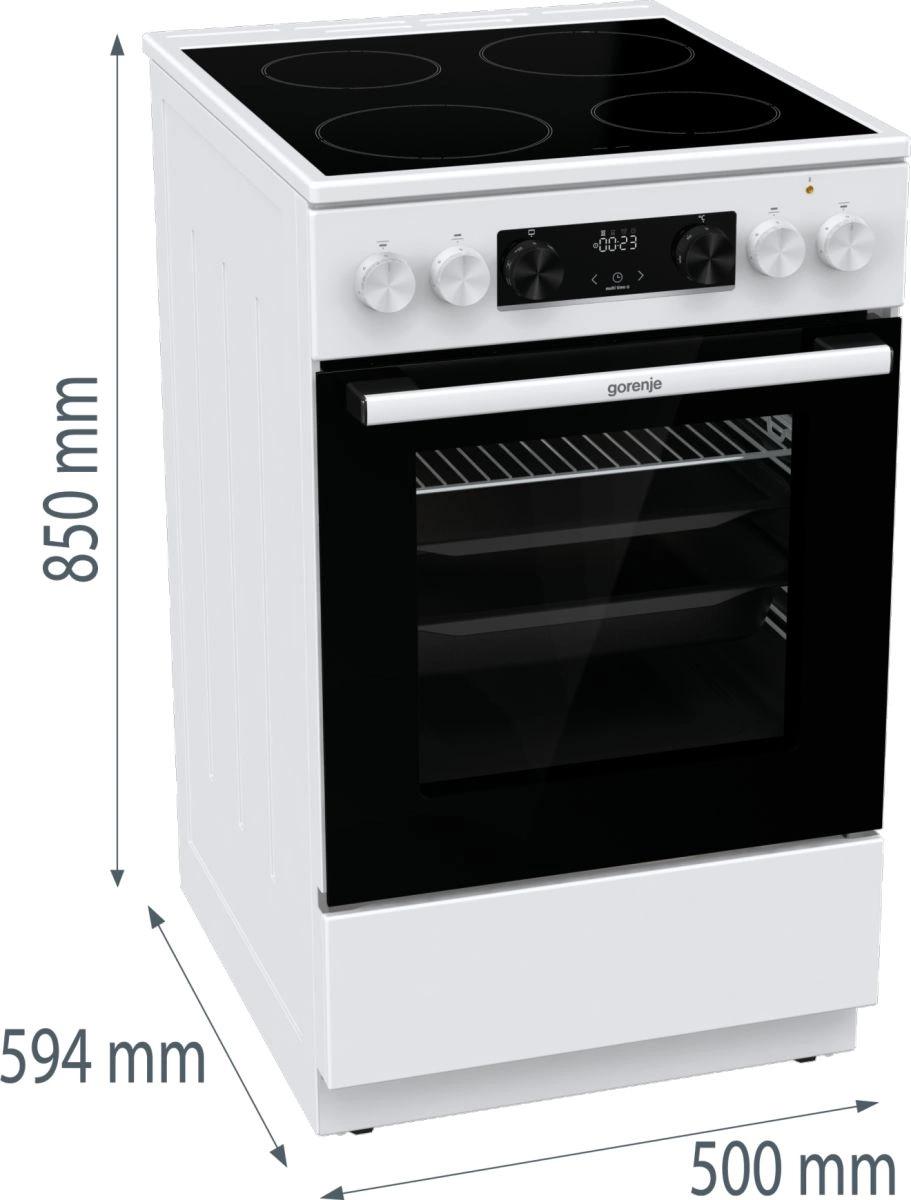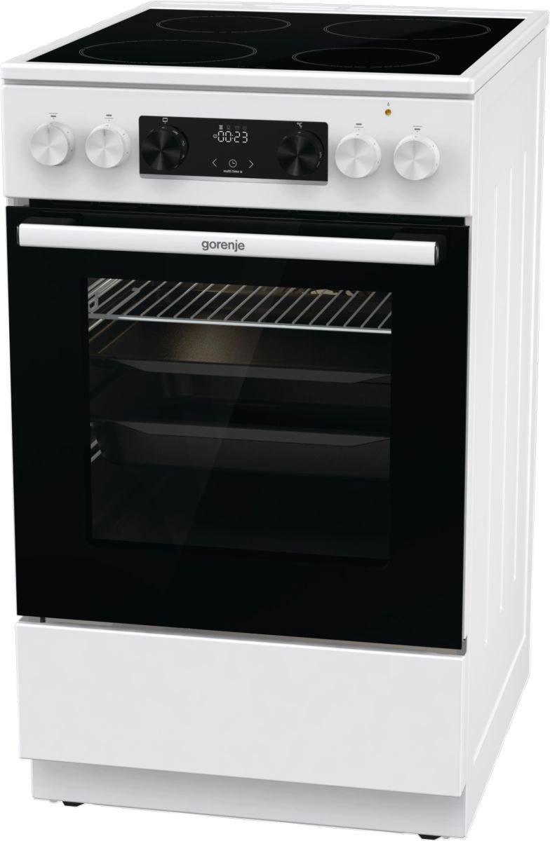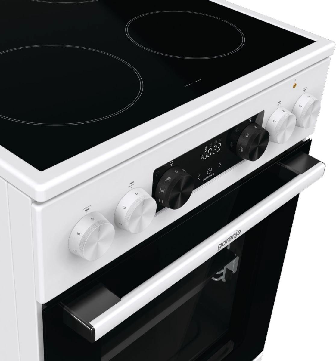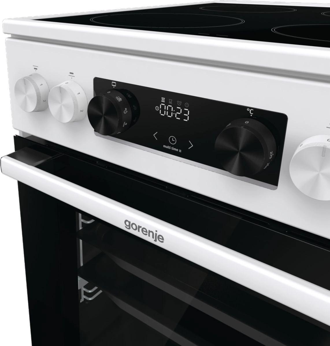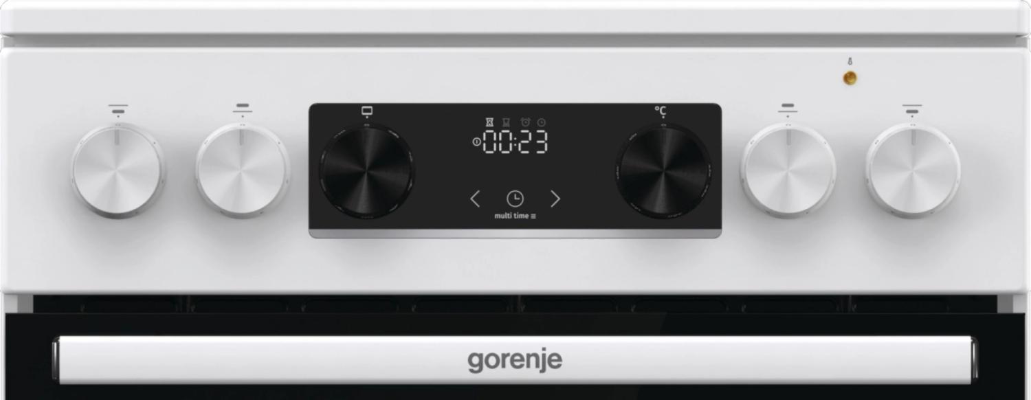 Электрическая плита Gorenje GEC5C42WG имеет корпус белого цвета, а дверцу духовки и варочную панель черного цвета. Такой дизайн смотрится лаконично и подойдет к вашей кухне. При помощи индикаторов остаточного тепла вы сможете определить состояние конфорки после завершения приготовления блюда, насколько сильно нагрета та или иная зона. Духовой шкаф является достаточно вместительным, объем его камеры составляет 70 л, вы сможете готовить несколько блюд одновременно на разных уровнях. Кроме этого, он выполнен по технологии BigSpace — обеспечивает дополнительный объем и свободную циркуляцию воздуха. Дверца девайса оснащена двойным остеклением. Конструкция включает 2 стекла+термоотражающее покрытие.