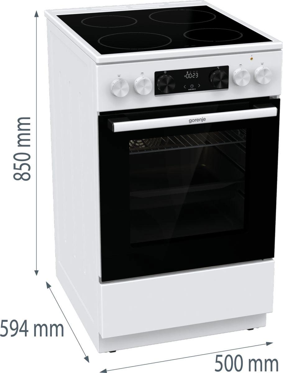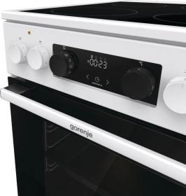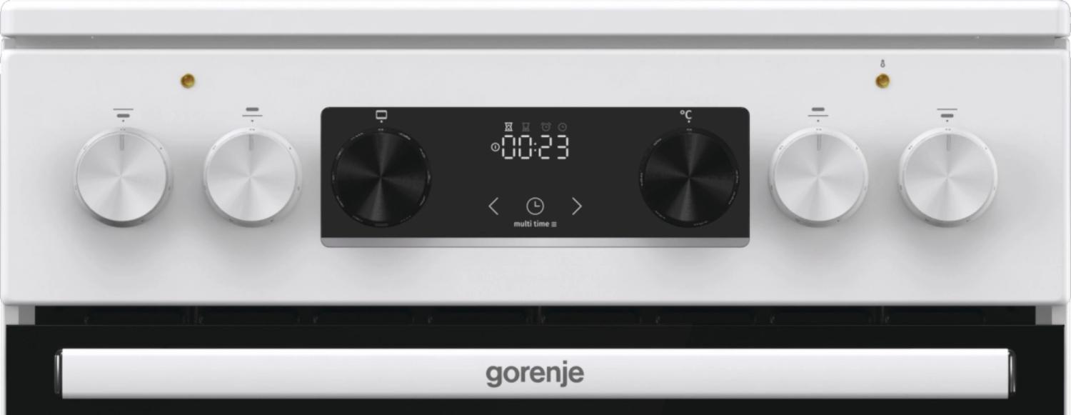 Электрическая плита Gorenje GEC5C61WG имеет корпус белого цвета, а дверцу духовки и варочную панель черного цвета. Такой дизайн смотрится лаконично и подойдет к вашей кухне. При помощи индикаторов остаточного тепла вы сможете определить состояние конфорки после завершения приготовления блюда, насколько сильно нагрета та или иная зона. Эргономичные переключатели и электронный программатор с аналоговым дисплеем помогают настроить режимы работы и таймер. 11 программ приготовления позволяют приготовить разные блюда. Продуманная технология равномерной циркуляции горячего воздуха MultiAir дает возможность готовить на нескольких уровнях сразу.