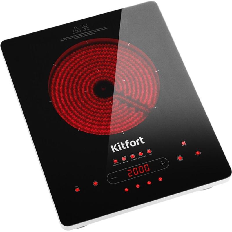 Плита электрическая Kitfort КТ-153 узкая черная (стеклокерамика, 1 конфорка)Инфракрасная плита КТ-153 использует современные технологии и приготовит ваши любимые блюда вкусно и очень быстро! Ее рабочая поверхность выполнена из стеклокерамики, что обеспечивает эффективный и равномерный нагрев.В отличие от индукционных плит инфракрасная плита не имеет импульсного режима. Нагрев происходит постоянно даже на самых минимальных мощностях. Индикатор 'Горячо' предупредит о сильном нагреве плиты, упреждая получение ожога. Мощность плиты - до 2 000 Вт.Плита имеет несколько автоматических режимов: жарка, кипячение, приготовление на пару, суп и обычный режим, где можно настроить необходимый нагрев от 100 до 2 000 Вт. Вы можете установить таймер до 24 часов. Функция блокировки кнопок сохранит заданные вами настройки. На обратной стороне плиты встроен вентилятор, который способствует быстрому охлаждению устройства во время интенсивной работы и после ее завершения. Устройство оборудовано противоскользящими ножками, придающими ему устойчивое положение на поверхности.Для инфракрасной плиты Kitfort КТ-153 подходит практическая любая посуда, однако рекомендуется использовать посуду с плоским дном. Плита выдерживает вес не более 10 кг.Устройство имеет компактные размеры: 28 x 36 см и минималистичный дизайн, благодаря чему плита легко впишется в интерьер вашей кухни. За плитой легко ухаживать. Перед тем как почистить ее, дождитесь остывания рабочей поверхности до комнатной температуры. Затем вы сможете с легкостью убрать поверхность плиты от загрязнений, используя моющие средства и тканевые салфетки.Внешний вид и/или характеристики товара могут быть изменены производителем в соответствии с производственным процессом.