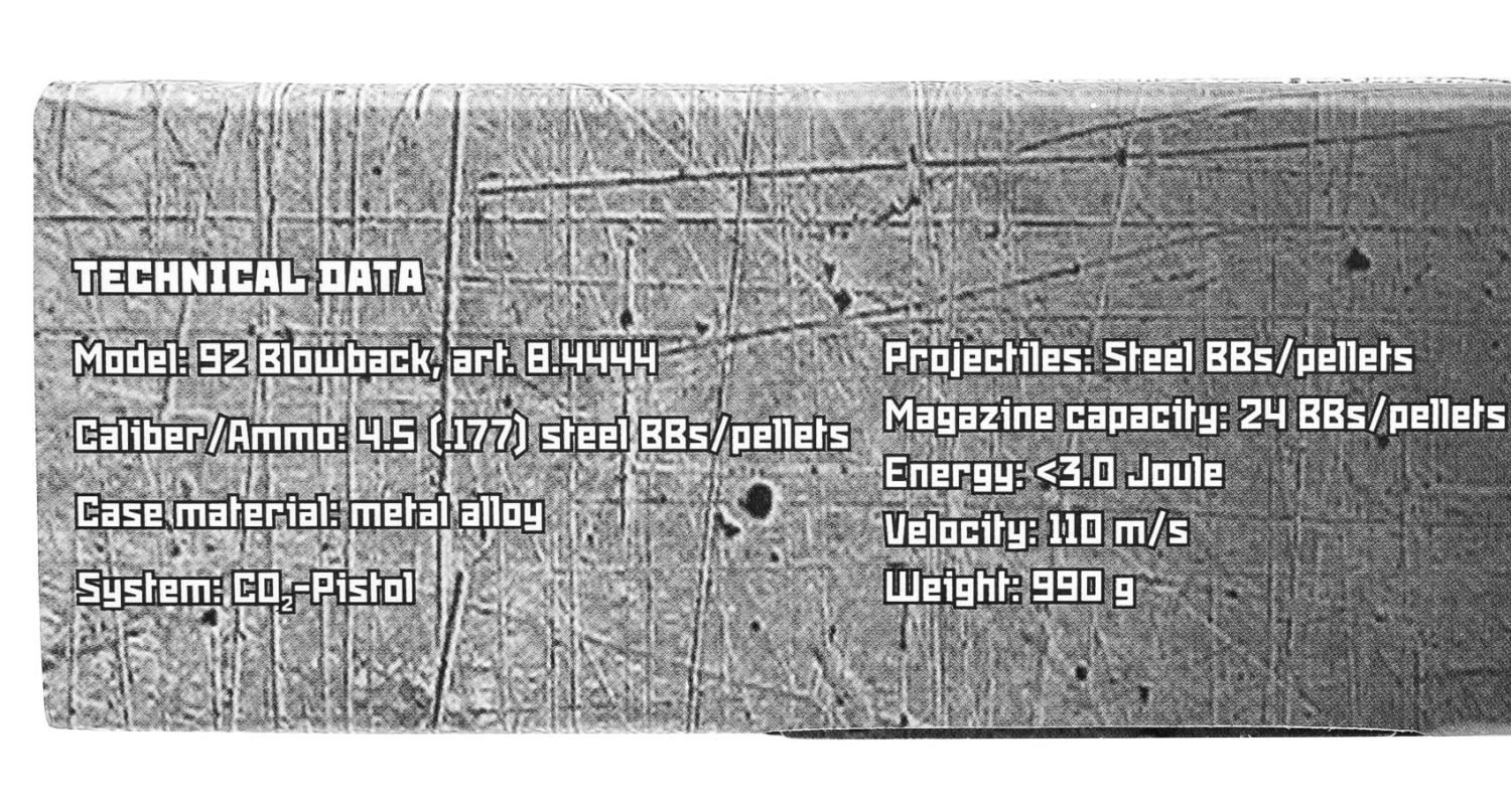 Пневм. пистолет BORNER 92 Blowback (Beretta) к.45мм/.177 (до 3Дж) / 4dealer.ru