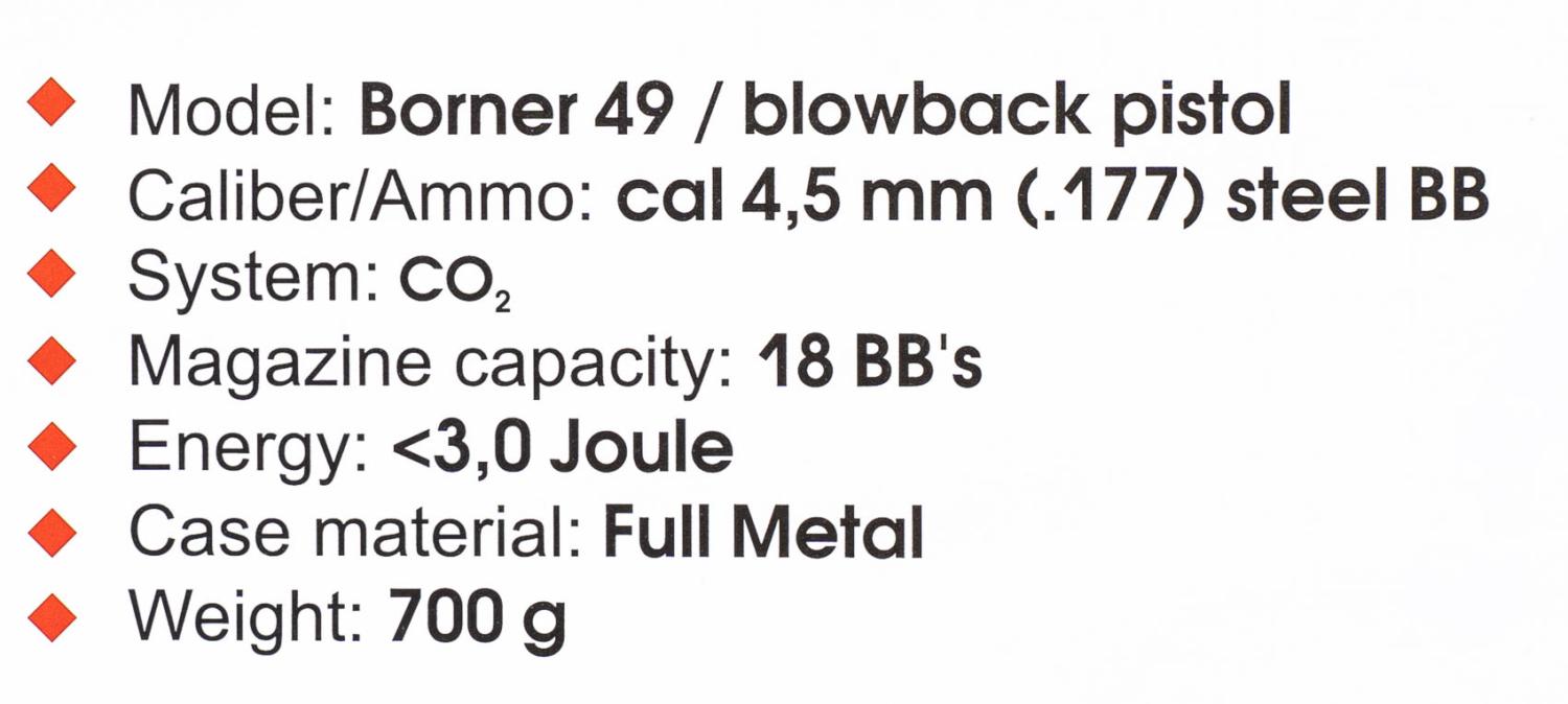 Пневм. пистолет BORNER PM49 Blowback к.45мм/.177 (до 3Дж)