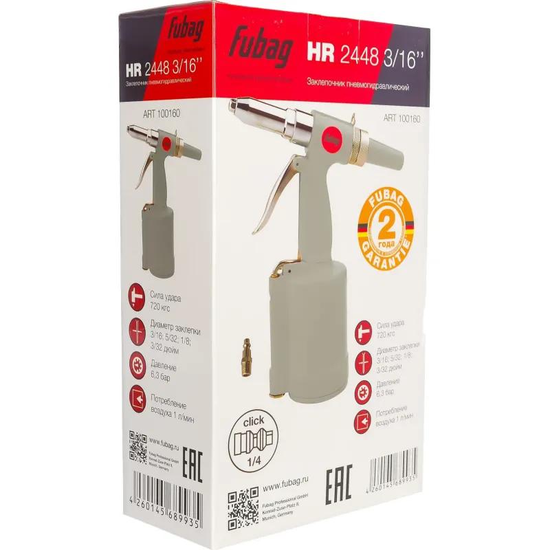 <p>Пневмогидравлический заклепочник Fubag HR2448 3/16» работает с вытяжными и резьбовыми заклепками, а также с резьбовыми шпильками. Обеспечивает низкую пожаро- и взрывоопасность, позволяет вести более длительную беспрерывную работу.</p>