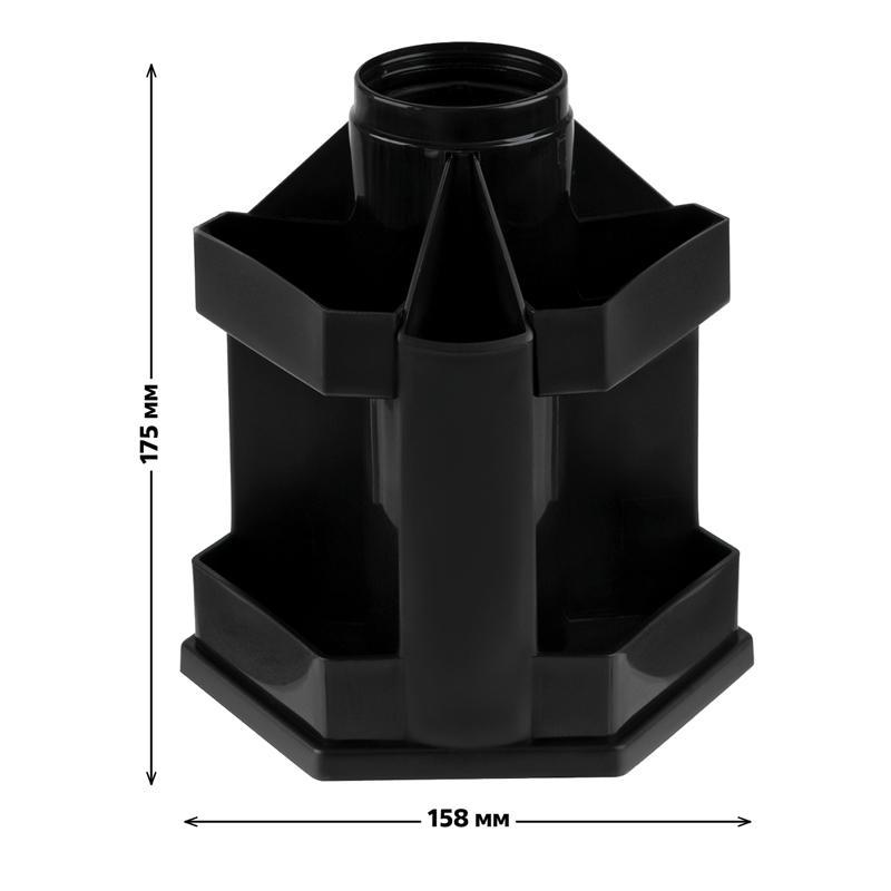 Подставка-органайзер Attache Maxi Desk 10 отделений чёрная вращающаяся. Настольная подставка Attache для пишущих принадлежностей и канцелярских мелочей. Имеет 10 удобных отделений и вращающийся корпус. Подставка для канцелярских мелочей Attache хорошо подойдёт для рабочего стола и не займёт много места. Цвет: чёрный. Размер: 220×230×65 мм.