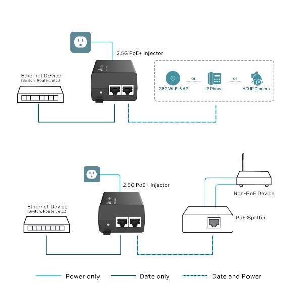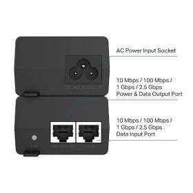 | Дополнительная информация | Высокая скорость передачи данных благодаря двум портам 2,5 Гбит/с. Поддержка стандартов IEEE 802.3af/at с бюджетом PoE до 30 Вт. Передача данных и питания по одному кабелю Ethernet. Автоматическое определение мощности, требуемой для питания подключённого устройства. Возможность закрепления устройства на стене или размещения на столе. Не требуется предварительная настройка. Встроенный источник питания. |
