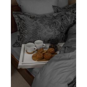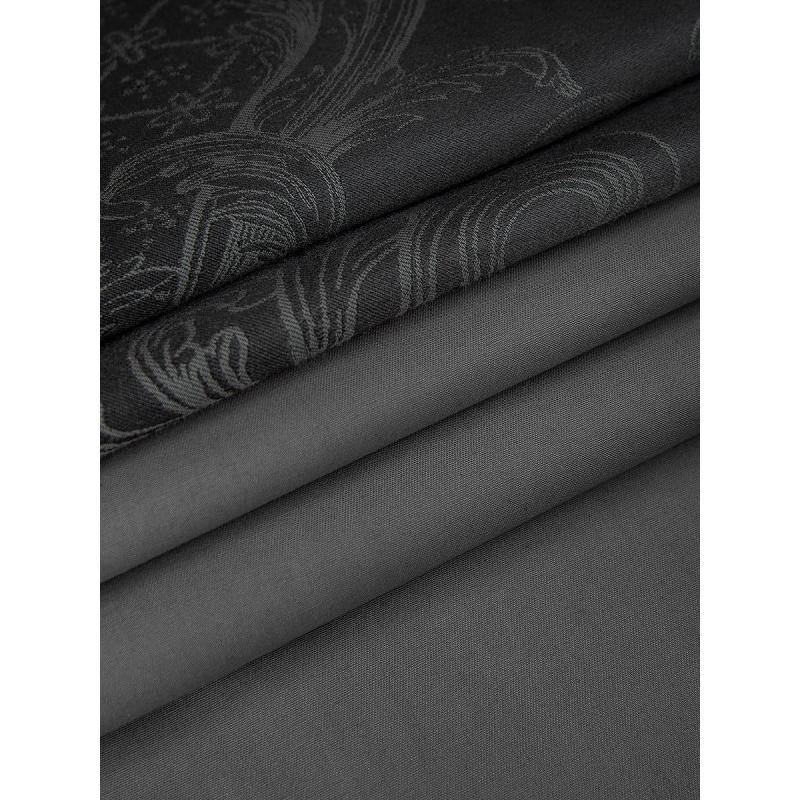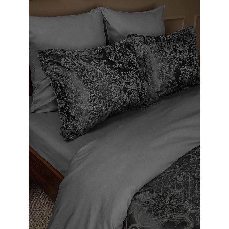 Постельное белье Buenas Noches черное/серое (2-спальное, сатин). Роскошное постельное белье торговой марки Buenas Noches относится к категории премиум. Благодаря современному производству оно надолго сохраняет свою красоту, даже при многочисленных стирках. Комплект производится из двух видов тканей - верхняя сторона (лицевая сторона пододеяльника и декоративных наволочек) выполнена из жаккардовой ткани с благородным, фактурным тканым орнаментом (65% хлопок, 35% полиэстер); внутренняя часть (простыня, оборотная сторона пододеяльника, большие наволочки и обратная сторона декоративных наволочек) - из высококачественного хлопкового, однотонного сатина (100% хлопок). Сочетание роскошного жаккардового полотна с отменным хлопковым сатином дарят ощущение аристократической изящности и комфорта. Постельное белье из жаккарда по праву называется королевским. В комплект постельного белья входят: - простынь 220x240 см; - пододеяльник 175x215 см; - 2 наволочки 70х70 см и 2 наволочки 50x70 см. Перед первым использованием комплект рекомендуется постирать при 30 градусах, используя мягкие средства для стирки без содержания отбеливающих веществ. Упаковка: картонная коробка.