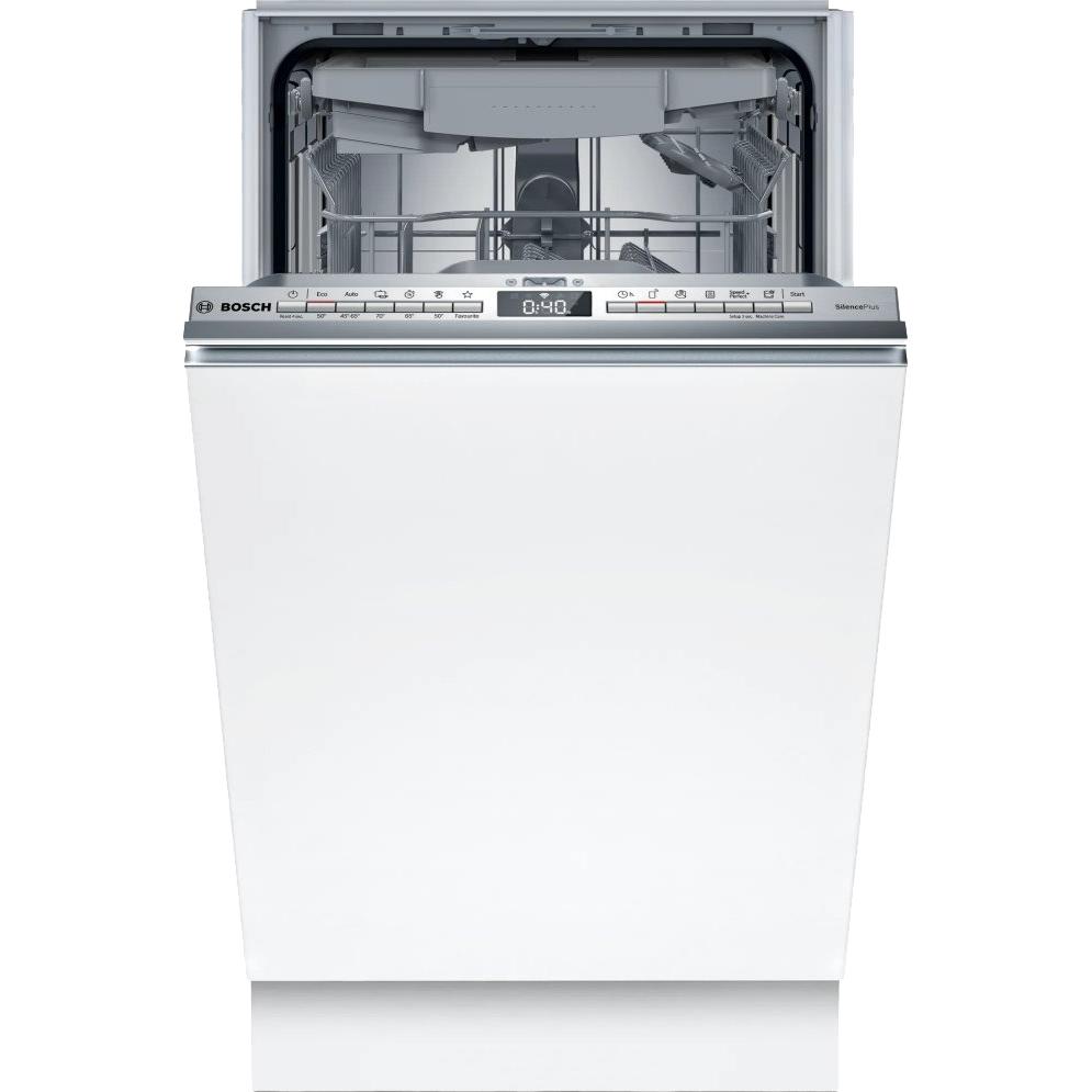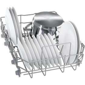 Посудомоечная машина Bosch SPV4HMX10E — узкая модель, которая рассчитана на единовременную обработку до десяти комплектов посуды. Прибор выполнен в корпусе цвета нержавеющей стали, встраивается в нишу размером 81,5-87,5х45х55 см. Регулируемые задние ножки помогут нивелировать неровности пола.