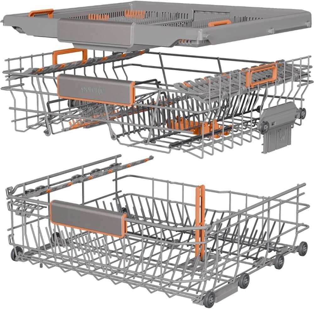 | Внутренняя конструкция | корзина для столовых приборов, освещение, полки для кружек, разбрызгиватель над верхней корзиной, регулируемая по высоте корзина для посуды, складные держатели тарелок |