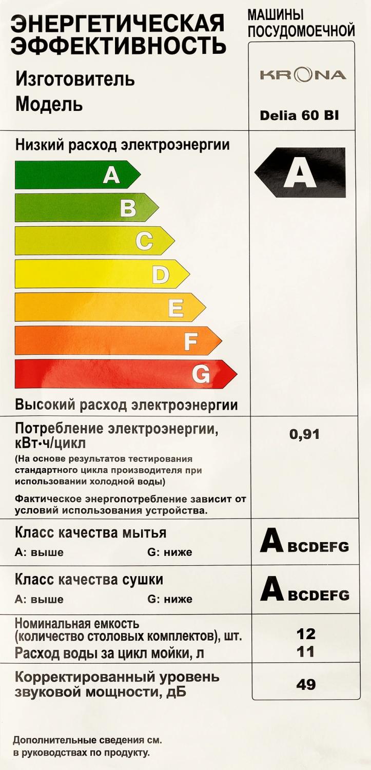| Класс энергопотребления | A++ |
