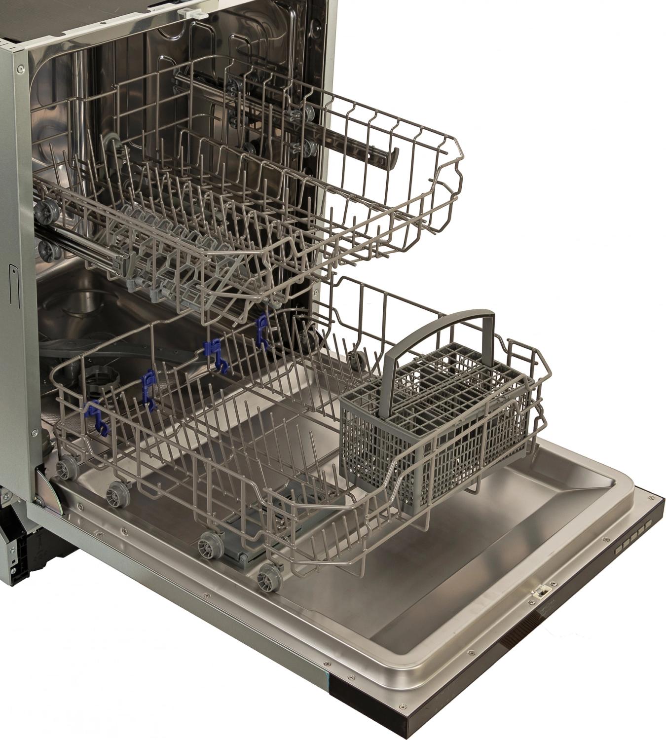 | Внутренняя конструкция | корзина для столовых приборов, освещение, полки для кружек, регулируемая по высоте корзина для посуды |