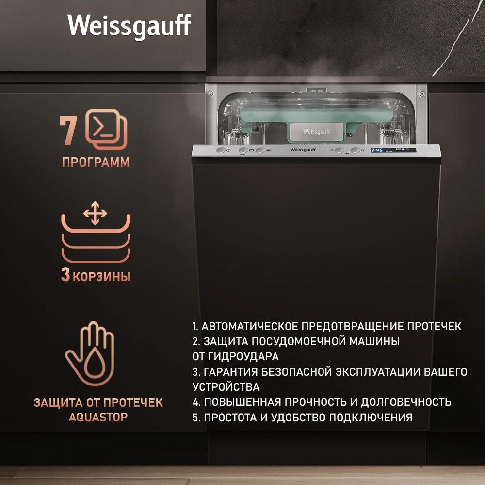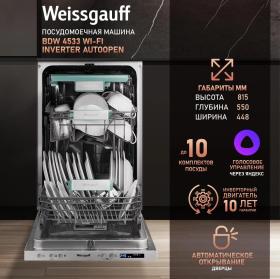 Посудомоечная машина встраив. Weissgauff BDW 4533 Wi-Fi Inverter Autoopen узкая инвертер / 4dealer.ru
