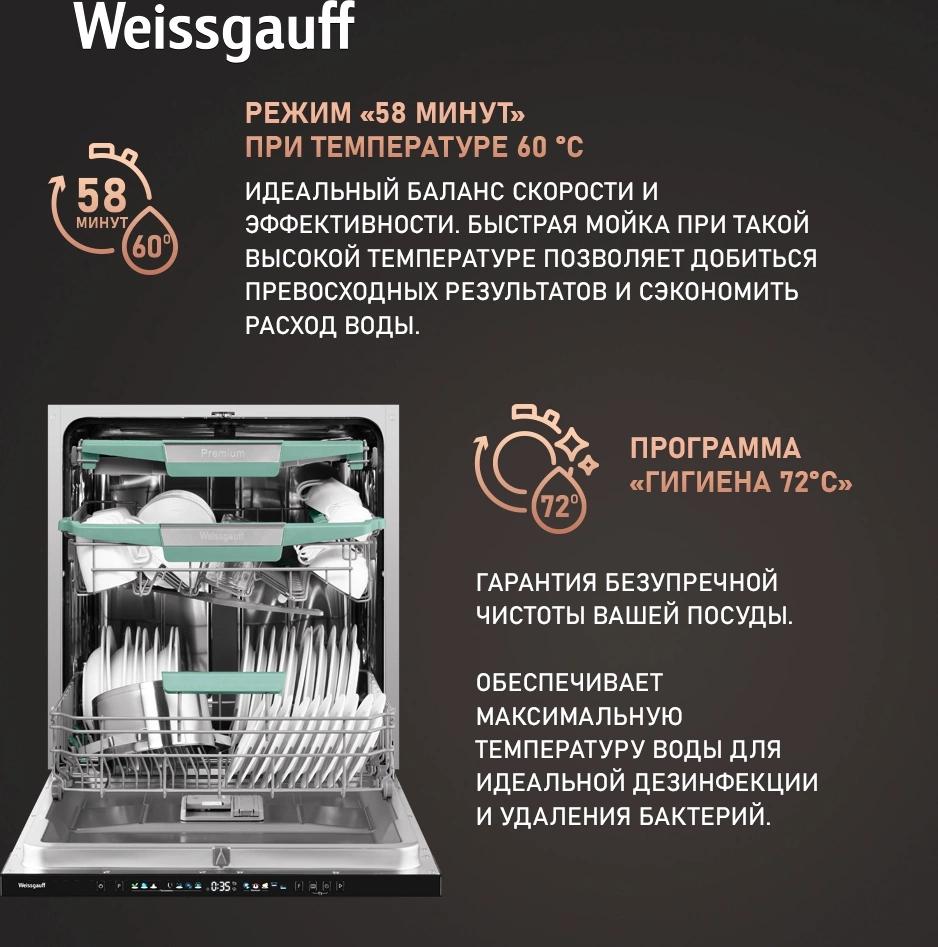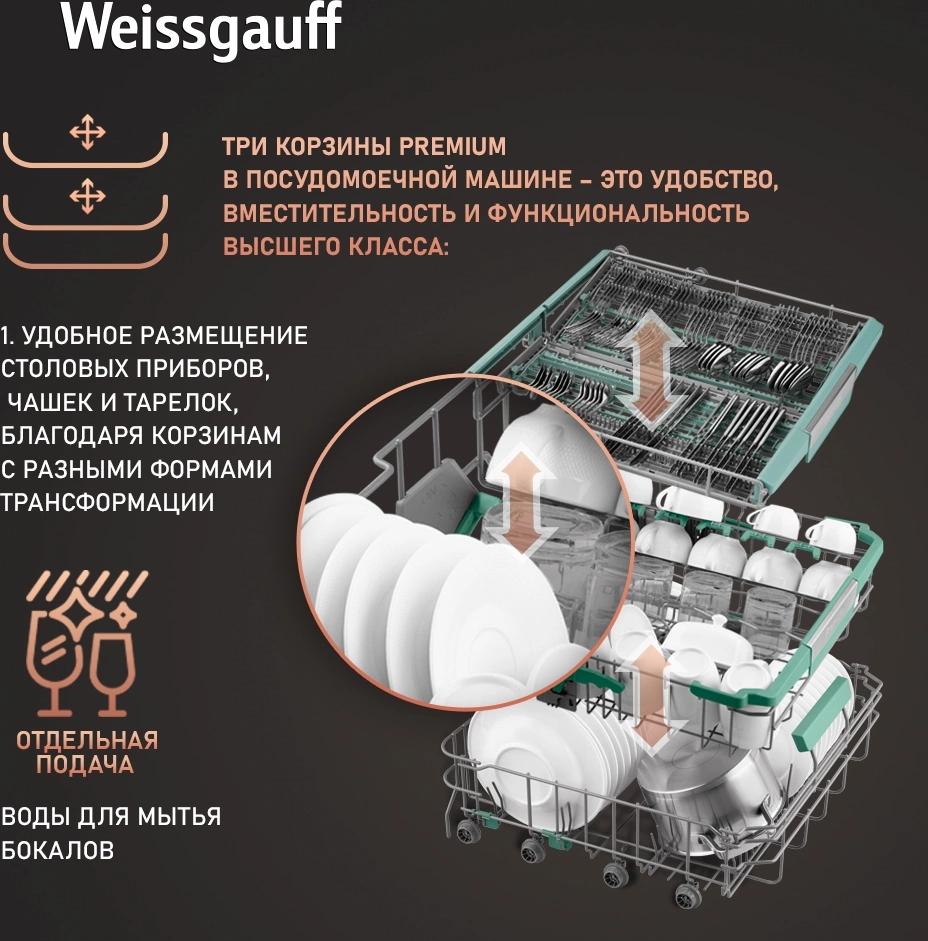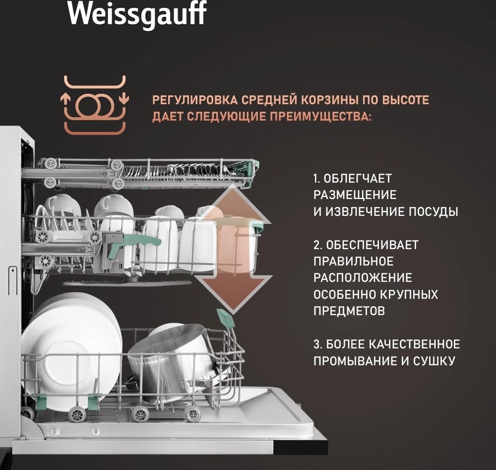 | Внутренняя конструкция | корзина для столовых приборов, разбрызгиватель над верхней корзиной, регулируемая по высоте корзина для посуды |