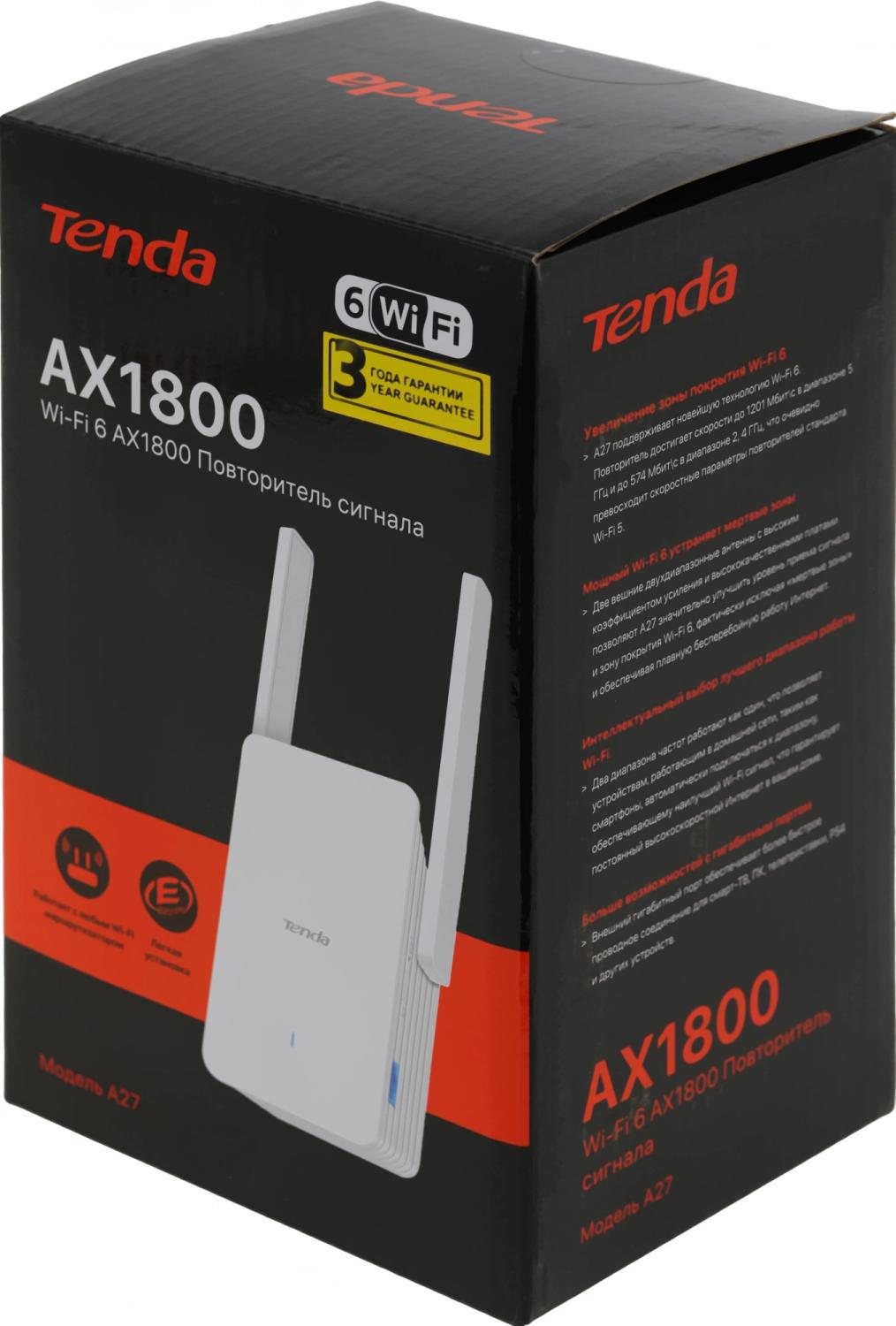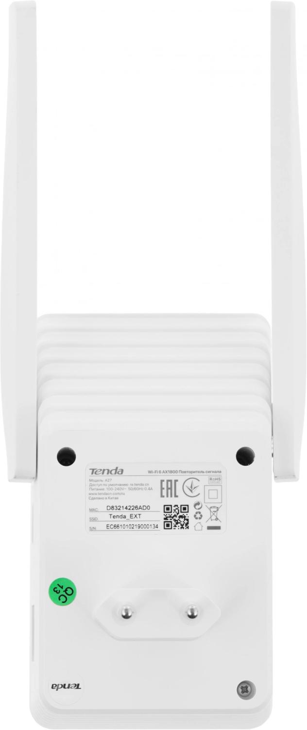 Расширитель диапазона|Скорость передачи данных 1167 Мбит/с|IEEE 802.11a/b/g|IEEE 802.11n|IEEE 802.11ac|IEEE 802.11ax|1x10/100/1000M|WPA - Wi-Fi Protected Access|WPA2 - Wi-Fi Protected Access|WPA3|Тип антенны Built-in|Коэффициент усиления 5 дБ|Количество антенн 2|Диапазон частот 2.4-5 ГГц|Мощность выходного сигнала 20 дБм|Аксессуары в комплекте Документация кабель Ethernet адаптер питания|Цвет белый|Размер 159х29х110мм