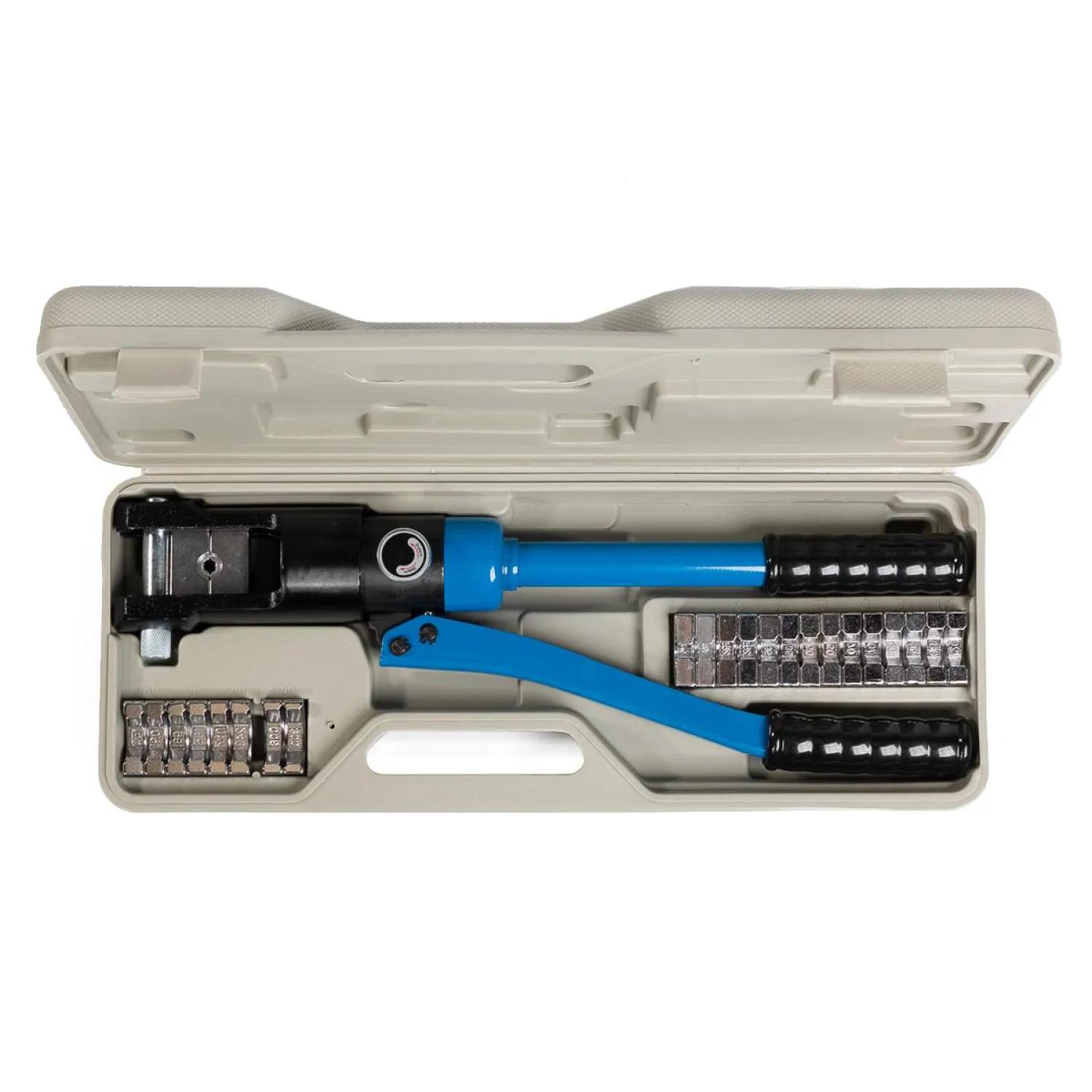 Пресс ручной гидравлический, используется для обжима медных и алюминиевых наконечников в диапазоне от 10 до 300 кв.мм. Для удобства и эффективной работы модель оснащена двухскоростной помпой и клапаном сброса давления, а ручки имеют чехлы эргономической формы. Поставляется в удобном кейсе. Материал рабочих частей — высококачественный металл.<br><br><!--noindex-->Внешний вид и/или характеристики товара могут быть изменены производителем в соответствии с производственным процессом.<!--/noindex-->