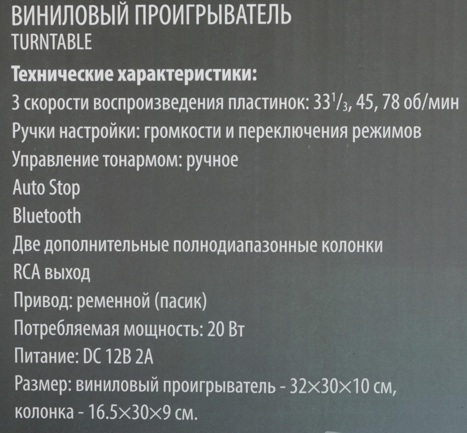 | Поддержка частоты вращения 33 об/мин | ДА |