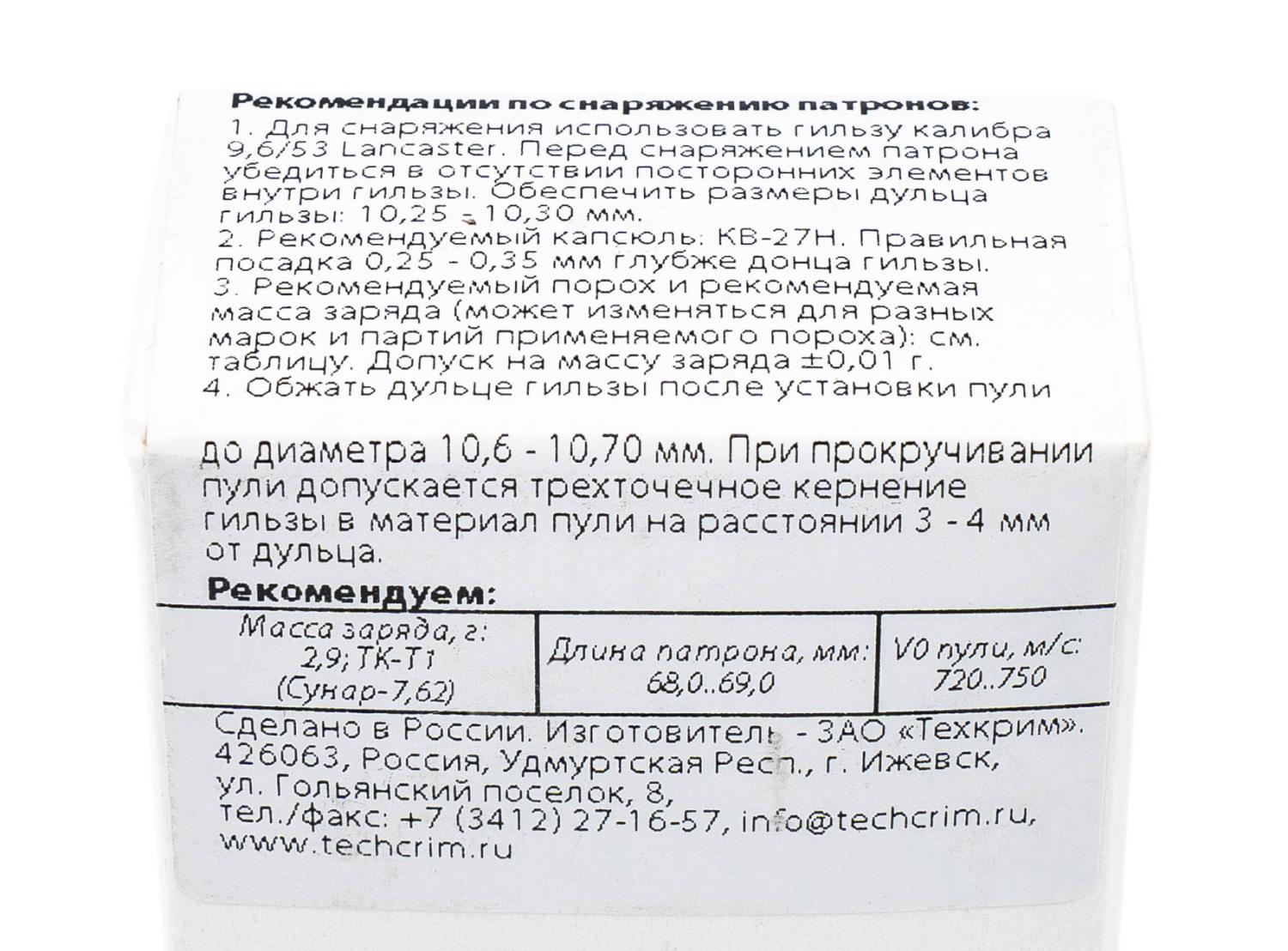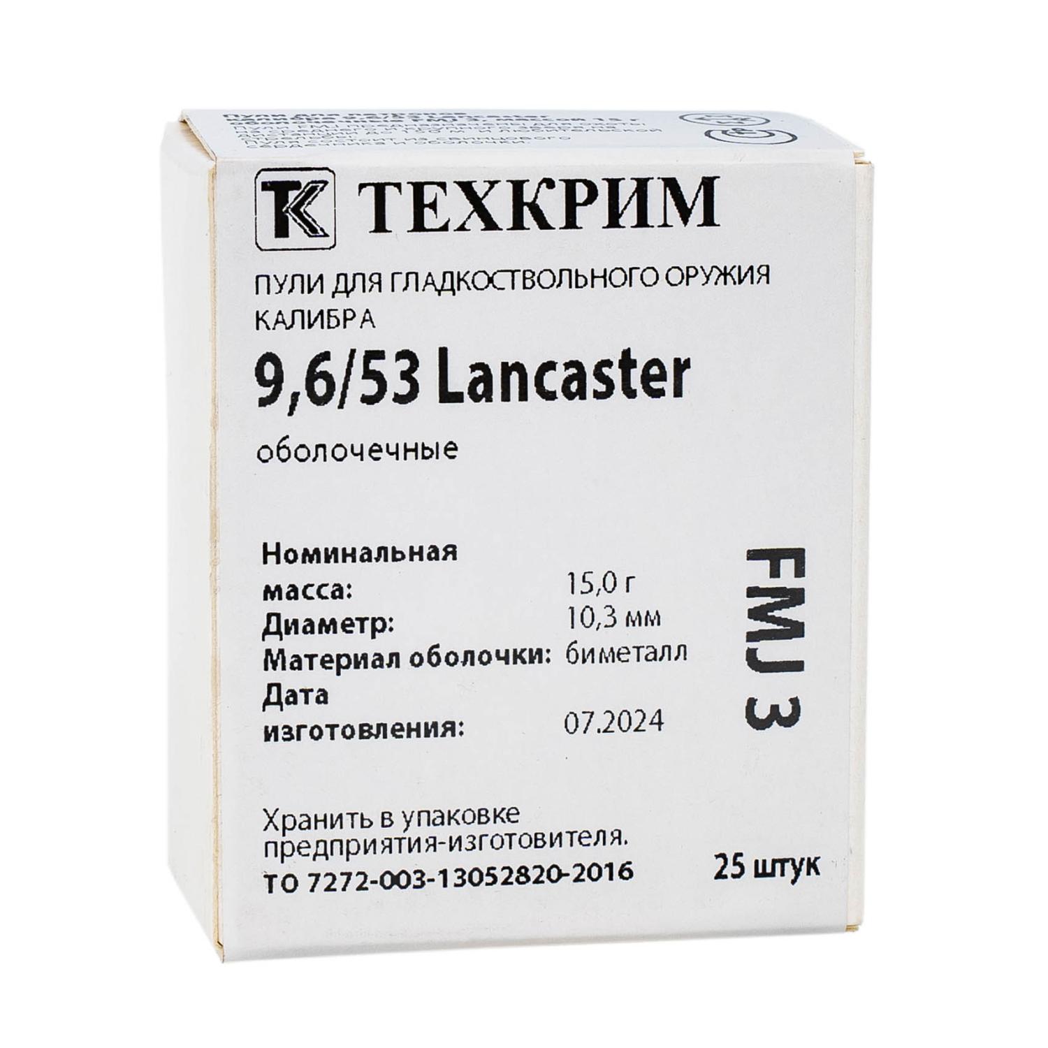 Пуля 96x53 Lancaster Техкрим FMJ-3 15г об. б/м (25шт/уп800/кор) / 4dealer.ru