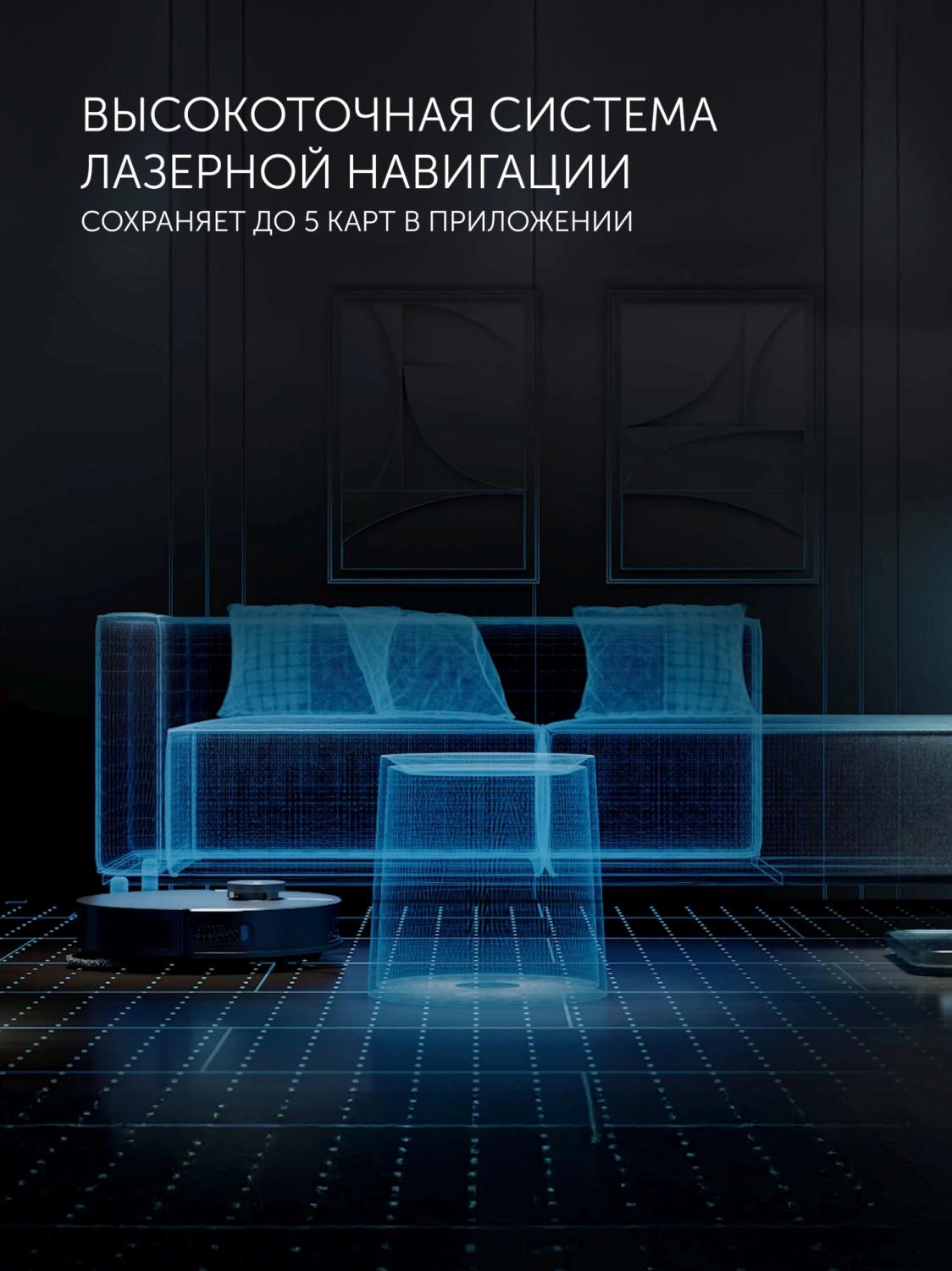 | Функции робота-пылесоса | автоматическая работа, автоматический поиск зарядного устройства, построение карты помещения, распознавание ковров, таймер на каждый день недели, уборка по расписанию, управление со смартфона |