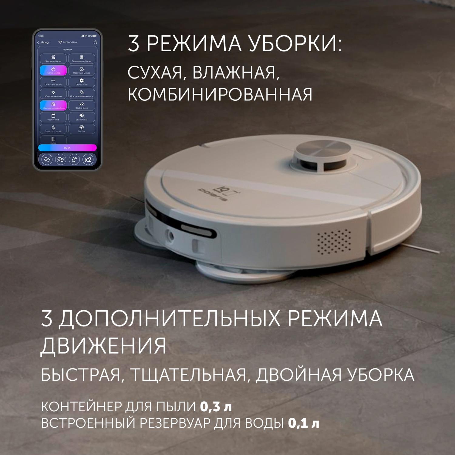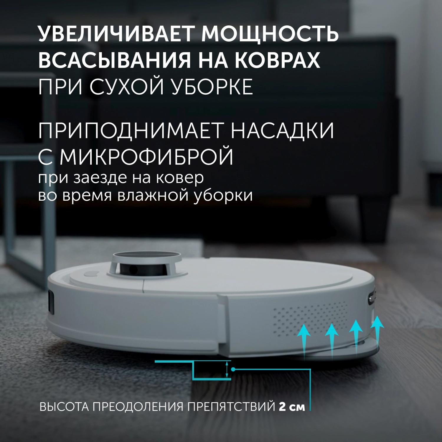 | Особенности | Голосовое сопровождение и оповещения, Запрет влажной уборки на коврах, Очистка и сушка насадок для влажной уборки, Плоский корпус для удобства уборки под мебелью, Полностью автоматическая уборка, Распознавание препятствий, Сохранение карты, Управление с голосовыми помощниками, Функция "найди меня" |