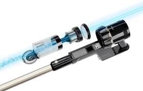 Особенности 550 Ватт BLDC, 800 мл пылесборник, 45/авто/15 минут рабочее время, 3 режима, 2 HEPA-фильтра, дисплей, стойка для хранения