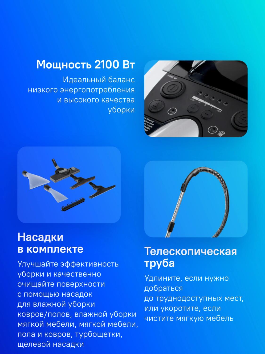 | Особенности пылесоса | место для хранения насадок, поворачивающиеся колеса, шланг |