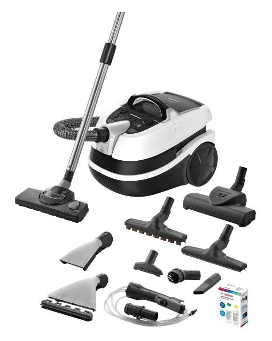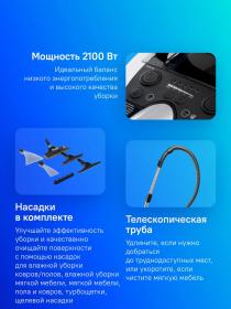 | Аксессуары в комплекте | насадка для влажной уборки ковров/полов, насадка для влажной уборки мягкой мебели, насадка для мягкой мебели, насадка для пола и ковров, турбощетка, щелевая насадка |