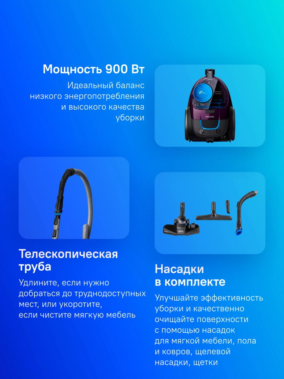| Особенности пылесоса | легко очищаемый пылесборник, место для хранения насадок, шланг |