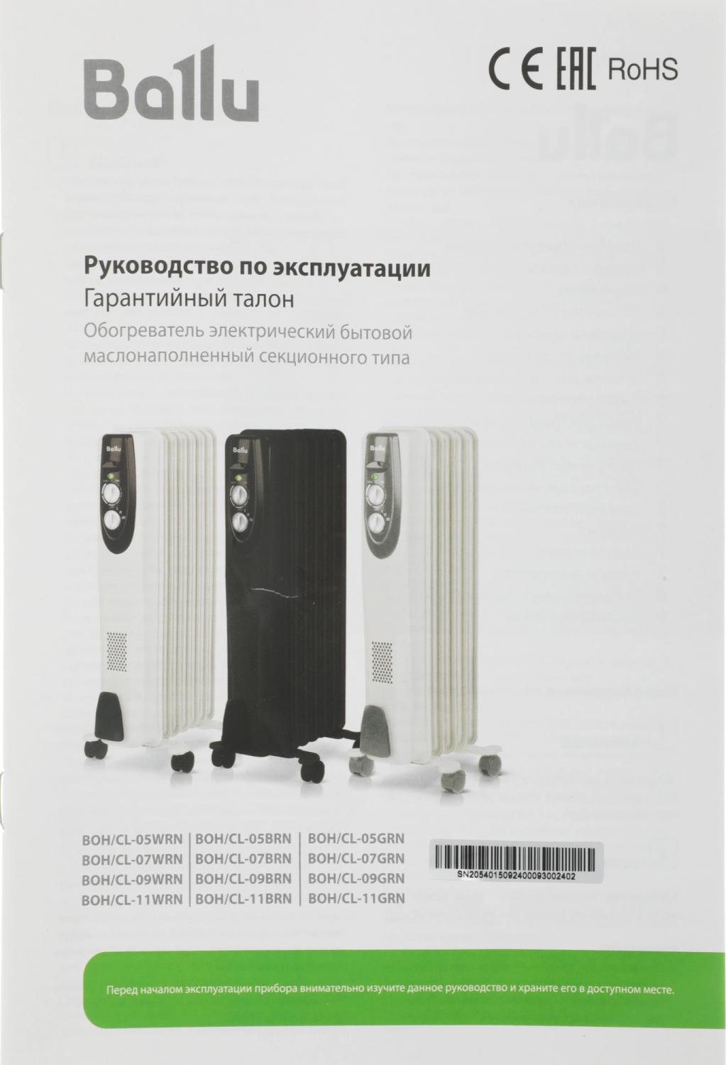| Краткое наименование | Радиатор масляный BALLU BOH/CL-07WRN |