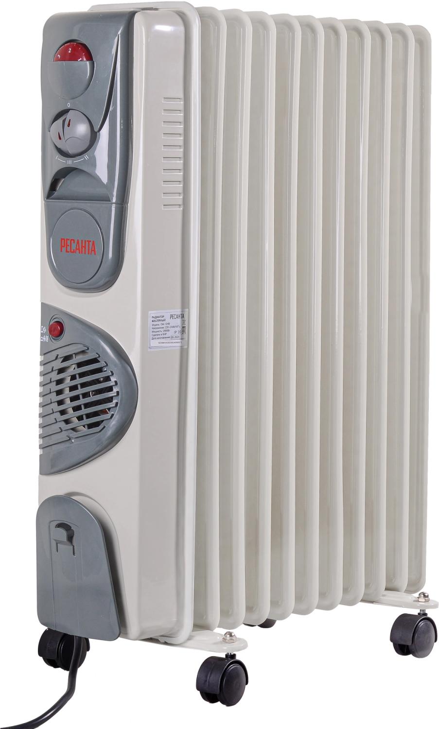 Радиатор масляный Ресанта ОМ-12НВ 2900Вт белый / 4dealer.ru