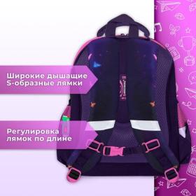 Удобная мягкая вентилируемая спинка с воздушными спонжевыми панелями разработана с учетом анатомических особенностей детей младшего школьного возраста. При правильной регулировке ранец будет практически не ощущаться на плечах и не будет доставлять дискомфорт при носке. В процессе эксплуатации равномерное распределение нагрузки позволит сохранить правильную осанку!