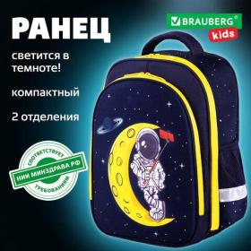 Ранец BRAUBERG KIDS STANDARD, 2 отделения, "Spaceman", СВЕТЯЩИЙСЯ, 36х28х14 см, 271384