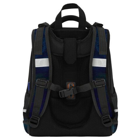 Удобная мягкая вентилируемая спинка с воздушными спонжевыми панелями разработана с учетом анатомических особенностей детей младшего школьного возраста. При правильной регулировке ранец будет практически не ощущаться на плечах и не будет доставлять дискомфорт при носке. В процессе эксплуатации равномерное распределение нагрузки позволит сохранить правильную осанку.
