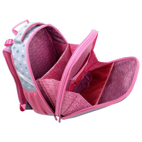 В основном отделении ранца можно легко и быстро разместить учебники и тетради. Внутри фронтального отделения находится органайзер для канцтоваров, именная карточка, карман для телефона и большое отделение из сетки. Такая организация пространства поможет держать принадлежности в сохранности и приучить ребенка к порядку. Ранец широко раскрывается, повышая удобство использования, а благодаря боковым перегородкам содержимое не выскользнет из ранца.
