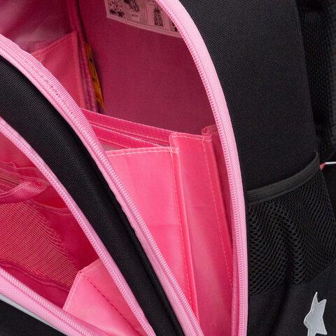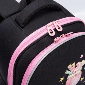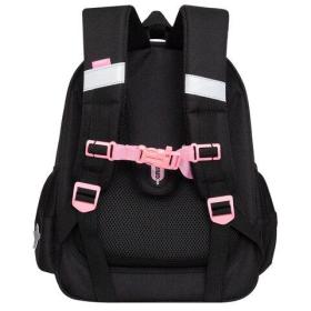 У рюкзака формованная лицевая часть, жесткая анатомическая спинка и жесткое дно на ножках. Содержимое надежно защищено. Конструкция рюкзака равномерно распределяет нагрузку на спину. Чтобы не уставали руки и плечи, присутствуют широкие лямки и нагрудная стяжка со свитком. Для безопасности в темное время суток со всех сторон нанесены светоотражающие элементы. За счет водо- и грязеотталкивающей пропитки ранец долго остается чистым. Если он все же чем-то испачкался, рекомендуется ручная стирка в холодной воде.