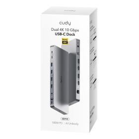 Док-станция Cudy CS700 USB-C, расширяющая USB-C до двух видеовыходов 4K в зеркальном или расширенном режиме, в комплект входит адаптер 150 Вт. Снимает ограничения расширения одного экрана Macbook Air.
