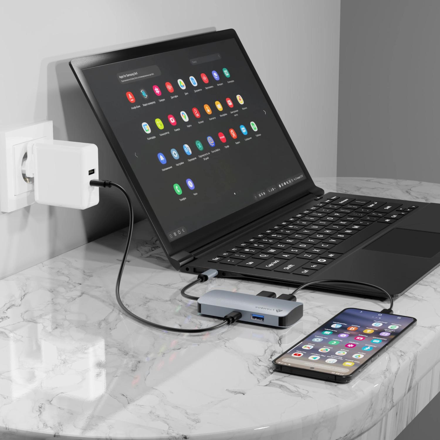 Разветвитель USB-C Lyambda LC118 5порт. серый / 4dealer.ru