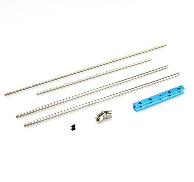 Ресурсный набор для создания системы линейного движения, приводимой в движение винтовой передачей. Включает в себя два резьбовых вала, два вала линейного перемещения, универсальный шарнир и алюминиевую балку привода с резьбой.