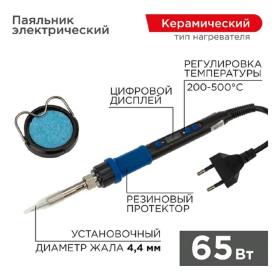 | Наименование | Паяльник REXANT с регулировкой температуры и дисплеем, подставка, керамический 65 вт 12-0620 |